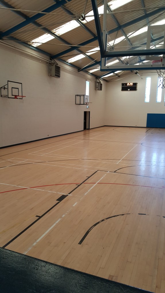 Full size basketball court, suitable for basketball, 5 a side soccer, badminton and a variety of sporting activities